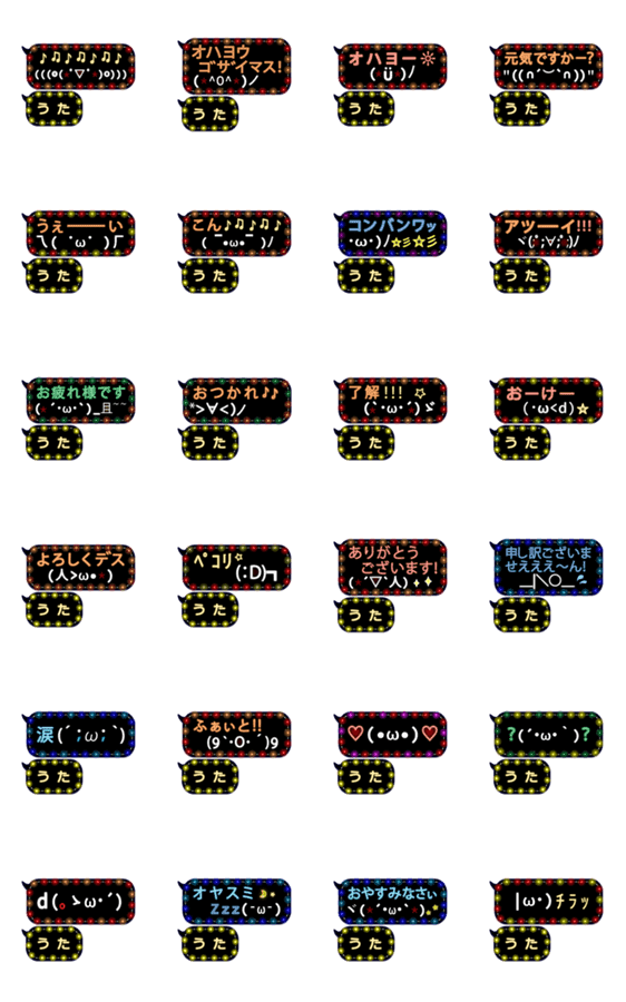 動く顔文字 うた の ふきだしイルミ Lineクリエイターズスタンプ Stamplist